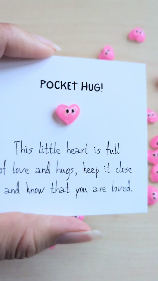 Pocket Hug Card with Heart Figurine - Encouragement Gift, Pick Me Up, Love Reminder - 2.5x2.5 Inches