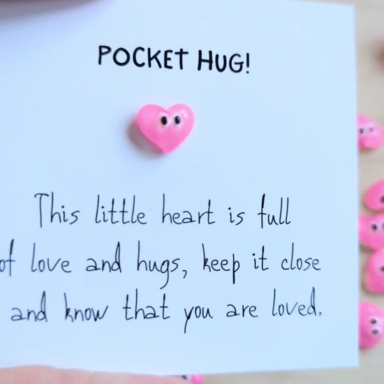 Pocket Hug Card, Love Reminder, Encouragement Gift, Tiny Heart Figurine, Pick Me Up, Miniature Card, Pocket Size, Yardstick Material, Thoughtful Gift, Comfort and Joy, Portable Token, Inspirational Keepsake, Love and Support, Adorable Design
